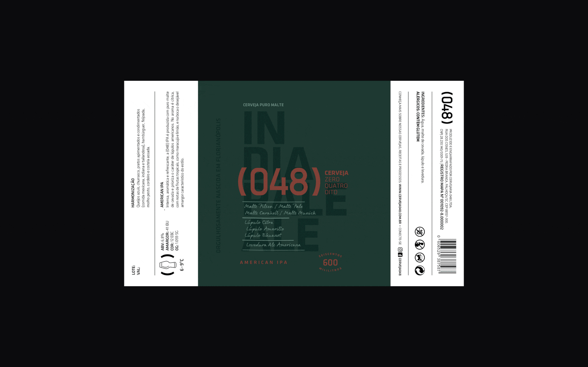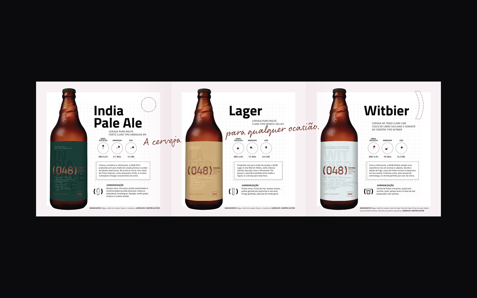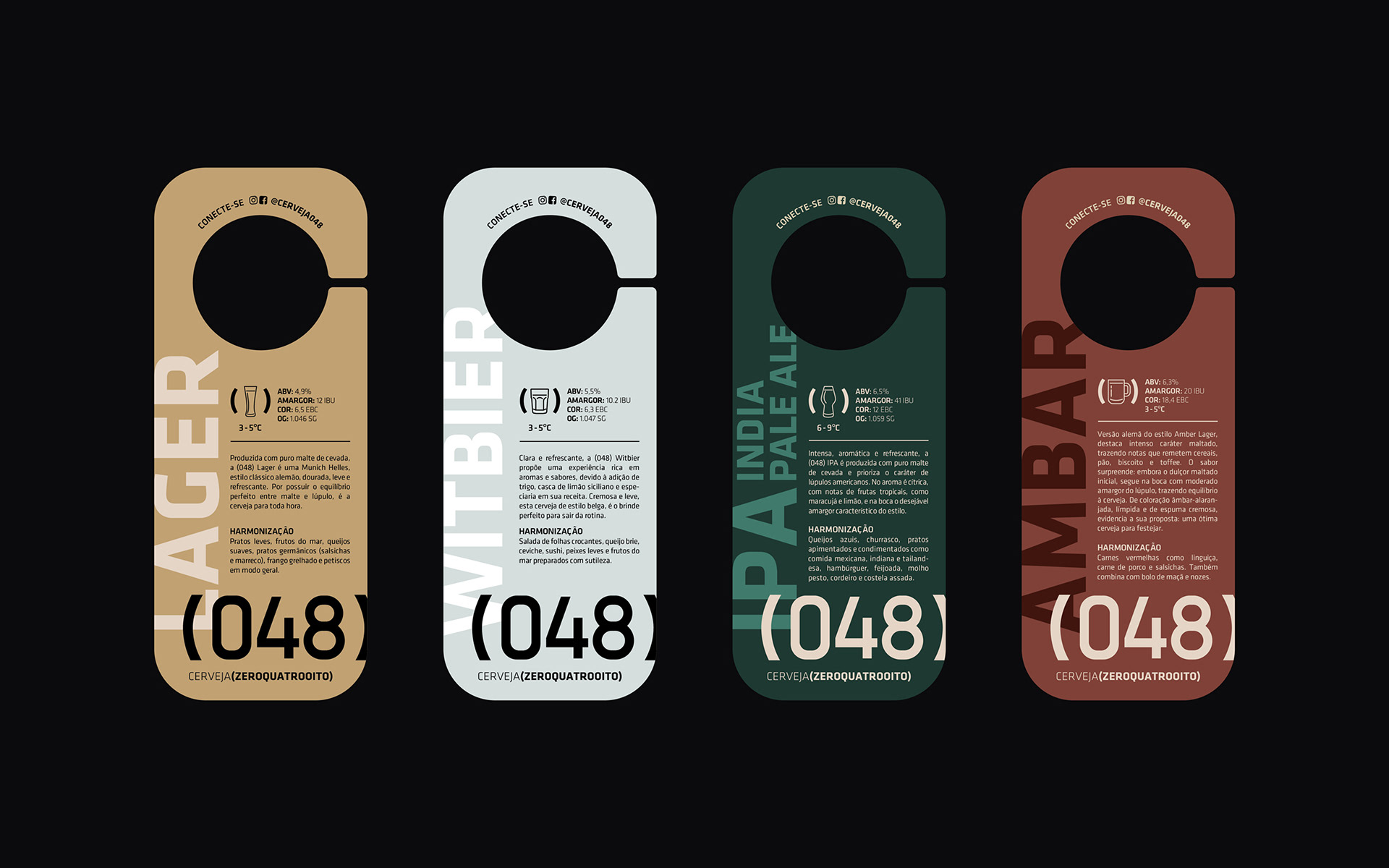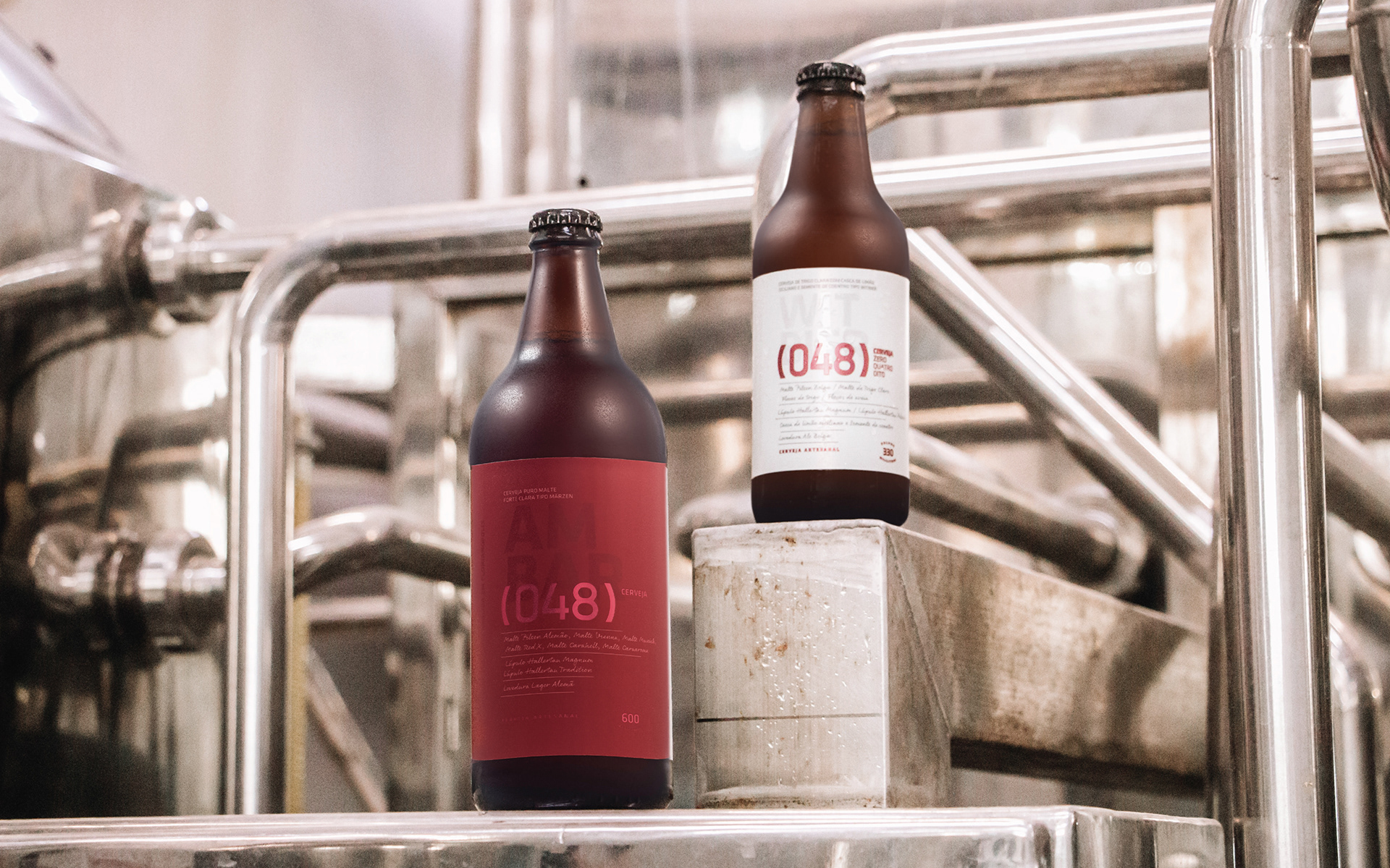 Branding, Identity and packaging. Cerveja (048) or only ZEROQUATROOITO has been our partner since day one. The brewery began with Cláudio, an engineer who developed unique, compact home brewing equipment to sell for beer enthusiasts and breweries looking for a way to produce small test batches. Cláudio ran multiple experiments to test his equipment, improving both his recipes and hardware with each iteration. The results were so good he decided to pivot the company from building equipment to making a unique local beer. We worked with the team at (048) to bring to the visual identity and labels both the company's engineering background and this sense of a fine-tuned, perfected recipe. For the Cerveja (048) labels we explored textures and finishes as local UV and metallic colors to bring a sophisticated touch for the packaging. We also brought all the ingredients used in the recipe to the front of the packaging showing the quality of the product and no fear to share our secrets, (048) is always innovating and one step further in the game. Role: Creative director / designer