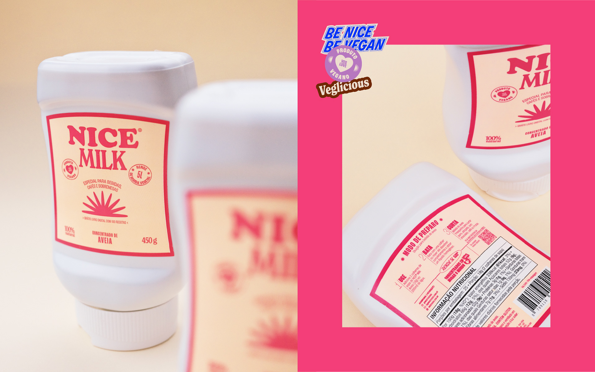 Nice Foods caters vegetarian and vegan individuals who seek a plant-based diet while also cherishing the nostalgic memory of their traditional recipes. Additionally, it’s intended for those with lactose and/or gluten intolerances, as well as individuals concerned about health and/or sustainability. Nice Foods is the only brand offering concentrated plant-based milks in Brazil. Another unique feature is its collection of online content focusing on vegan food, as the democratization of this subject matter is paramount for the company. Through these publications, Nice also showcases the versatility of its products, enhances its engagement on social networks and fosters an active community of customers.