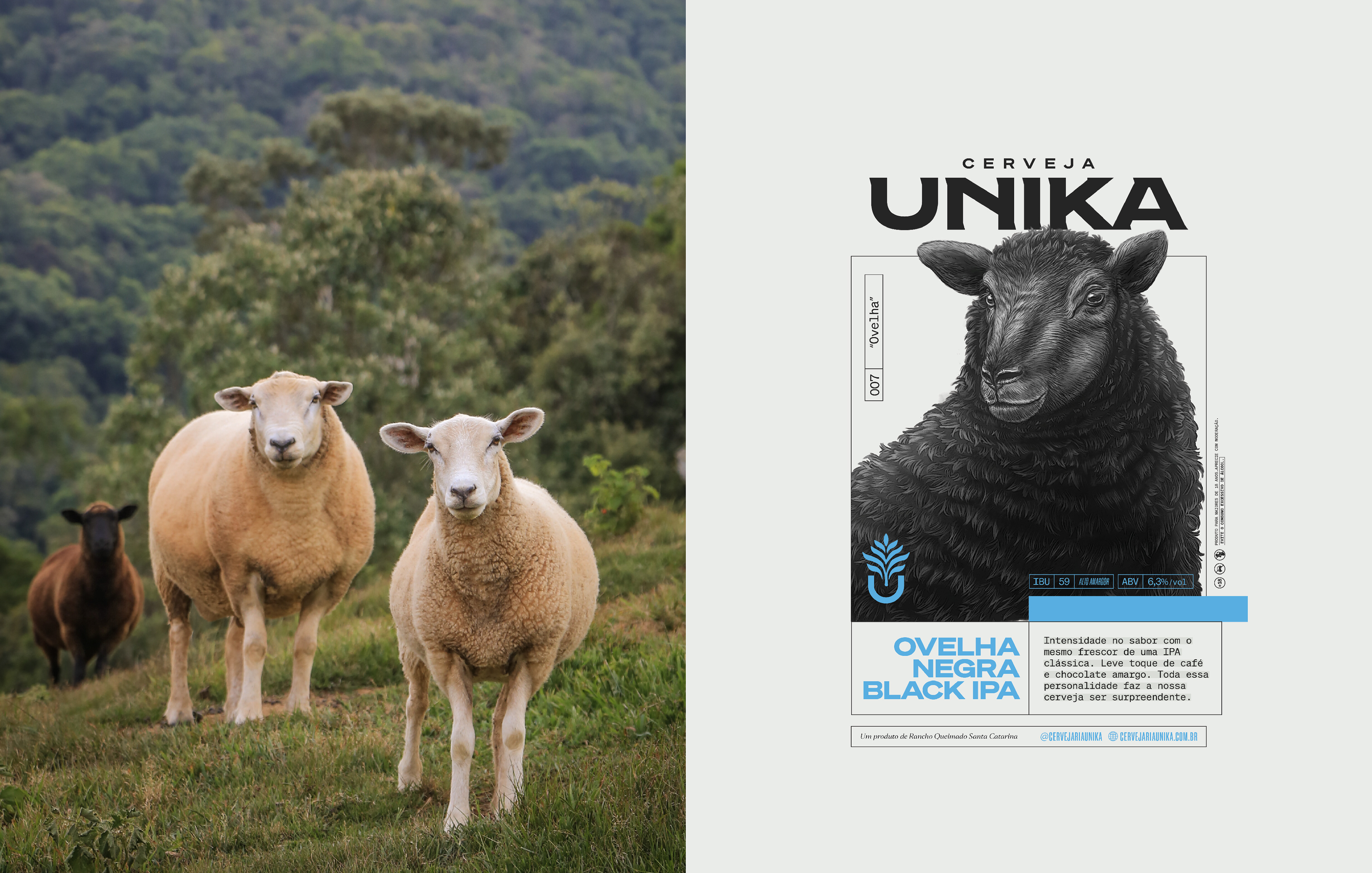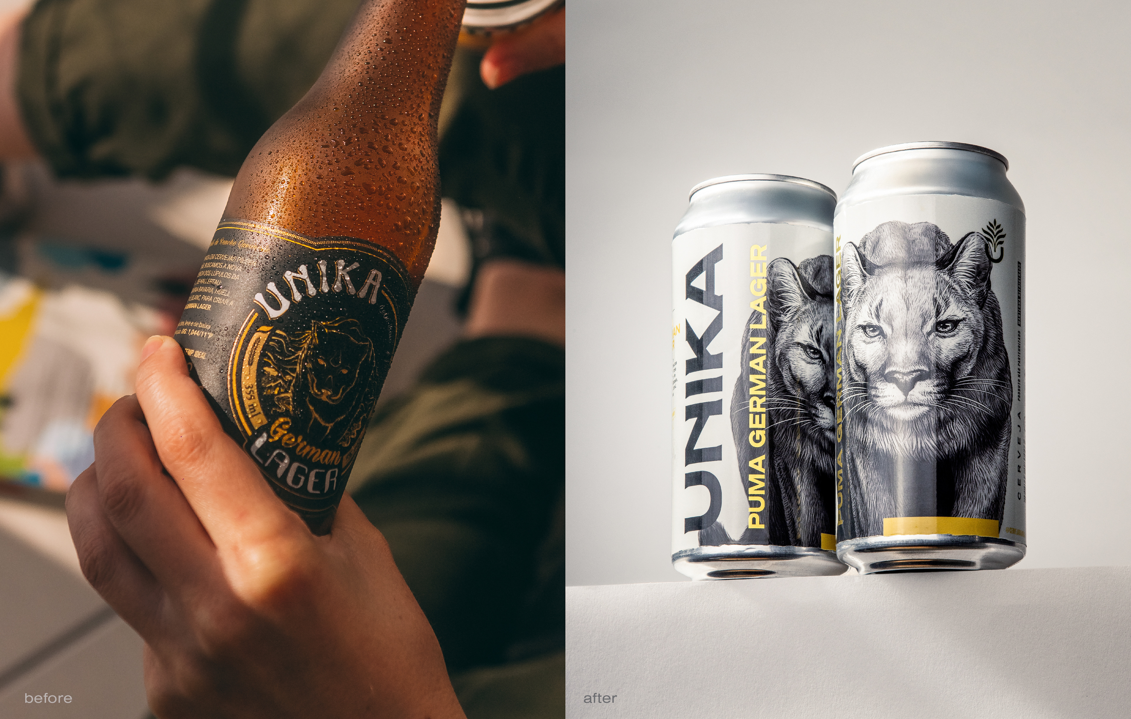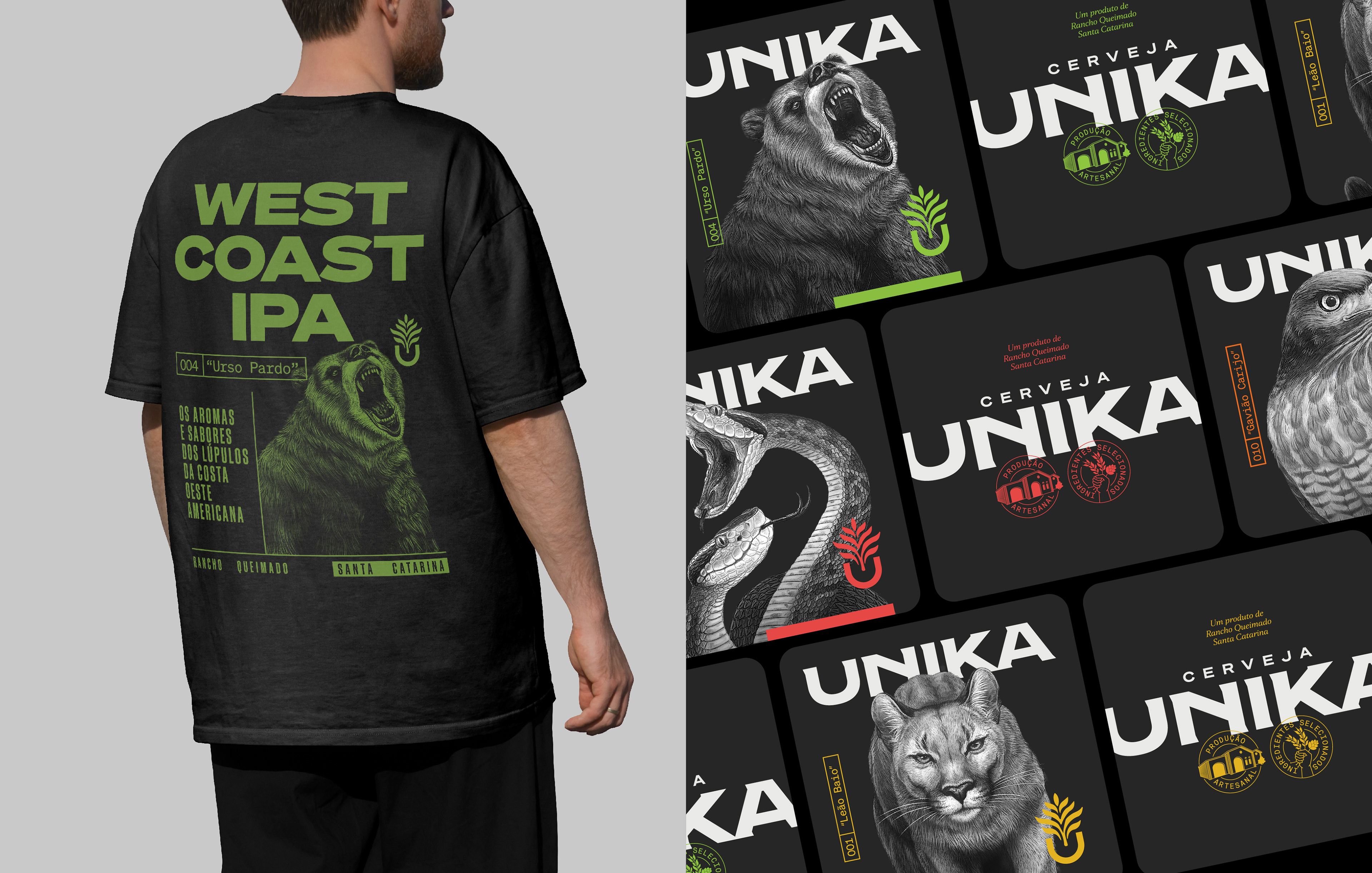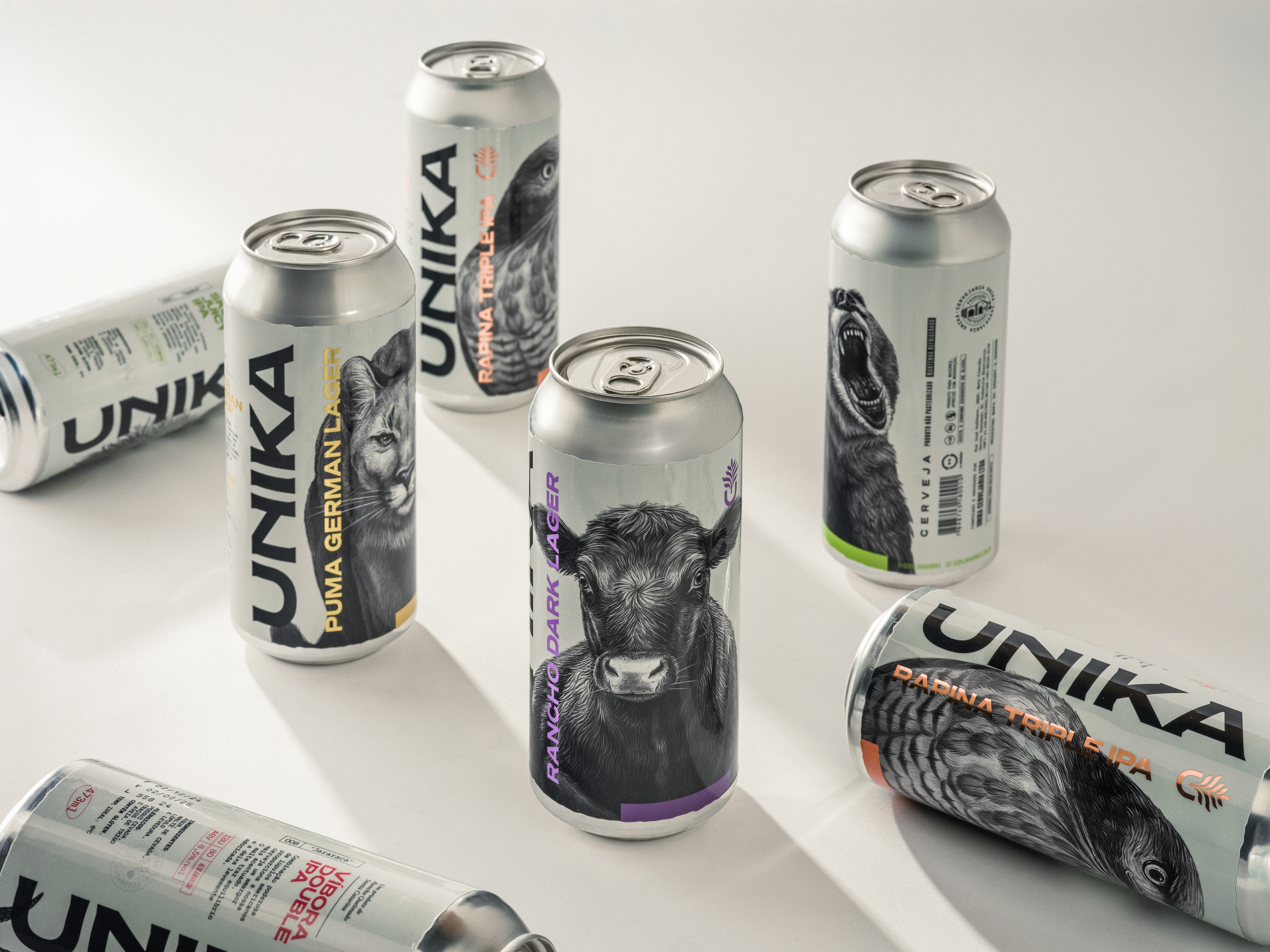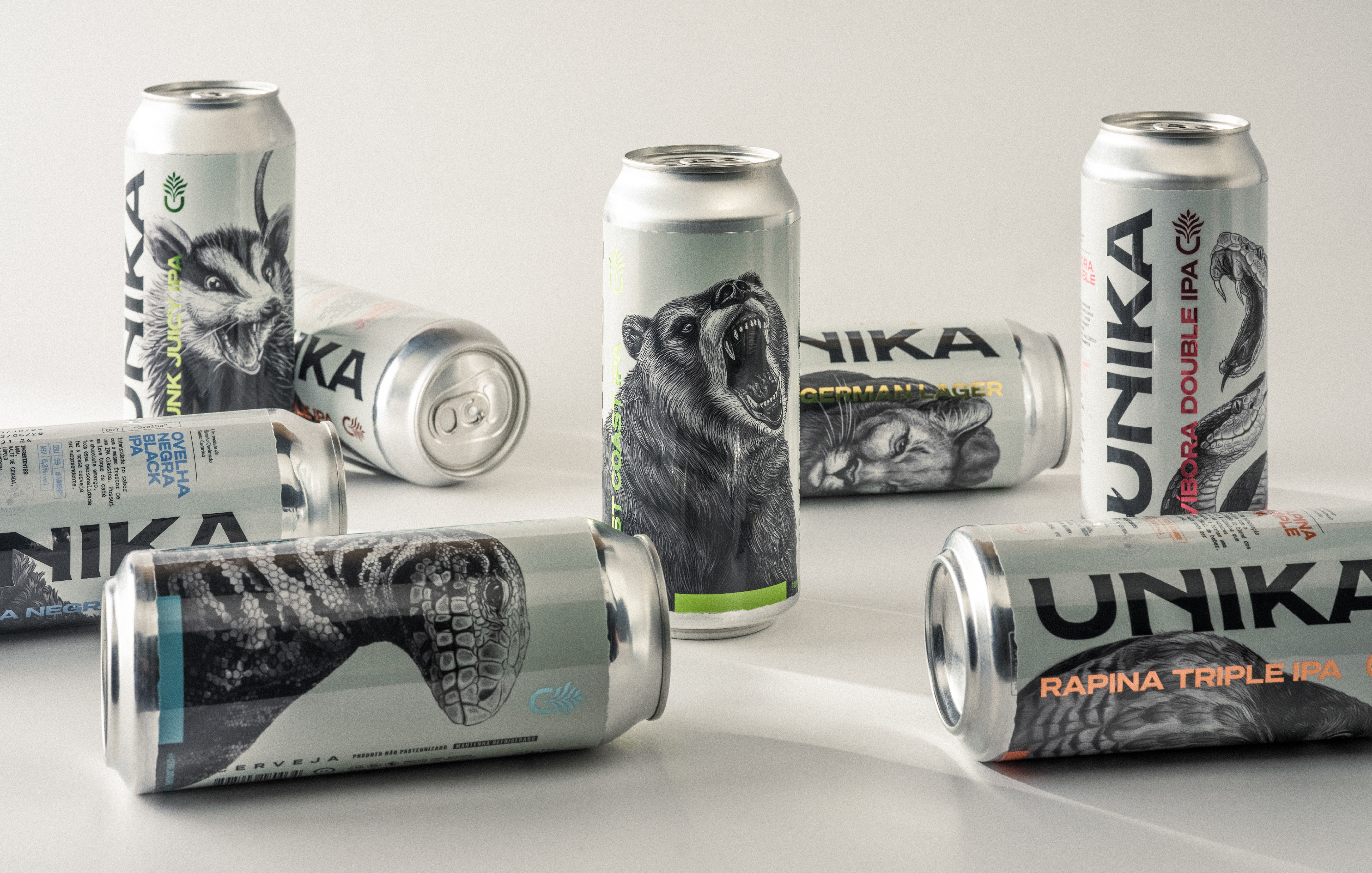 Rebranding and packaging. Founded in 2016 in the bucolic Brazilian mountains, Unika produces award-winning craft beers rooted in nature. Surrounded by native fauna and flora, the brewery values quality, creativity, and local ingredients. For the redesign, we imagined a mountain artisan in search of the perfect form. This guided a rustic, handmade visual identity with earthy colors, textured materials, and detailed typography. Every element reflects the brand’s essence. The result respects Unika’s mystique while bringing new energy. The redesign was embraced by its loyal community and strengthened its market presence. Role: Creative director / Designer